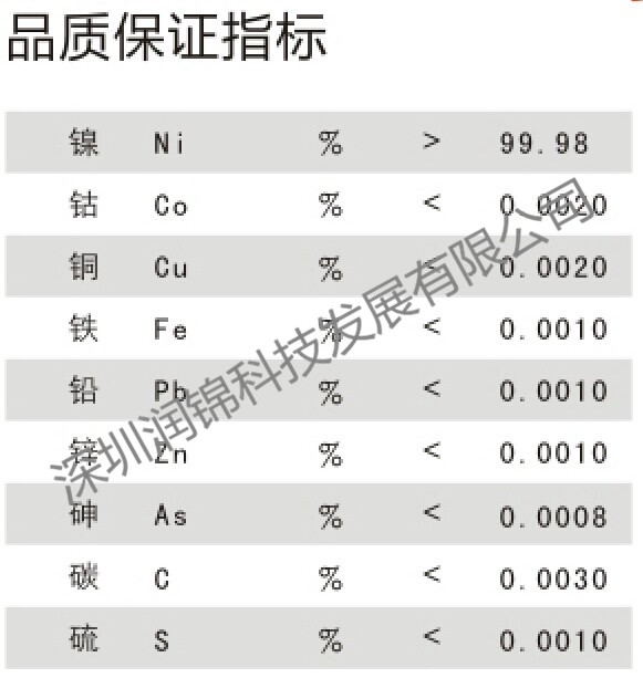 含 量:鎳含量99.9%以上