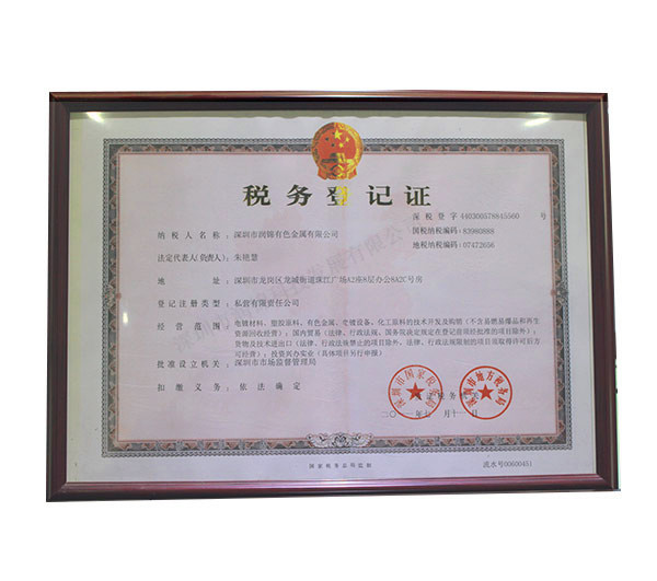 潤錦有色金屬稅務(wù)登記...