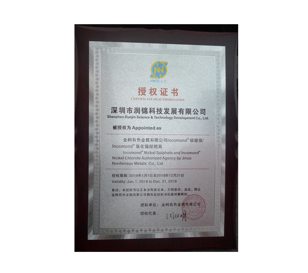 金柯2018授權(quán)證書