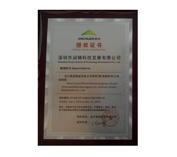 金川2018授權(quán)證書